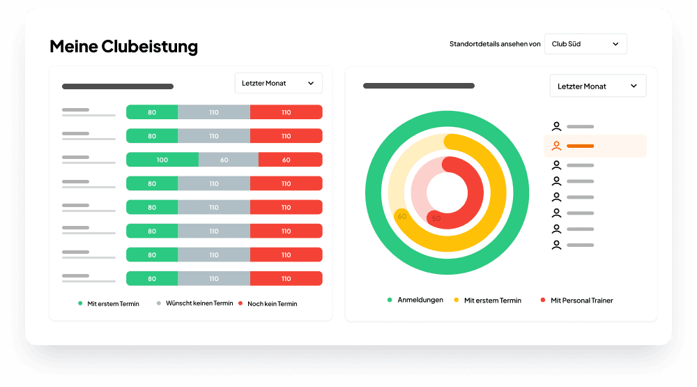 Verhindere unzufriedene Mitglieder und Leistungslücken, indem Du schneller auf Echtzeiteinblicke in Engpässe reagierst. Sammle alle KPIs und Daten auf einem Dashboard, entdecke Engpässe und passe diese mit einem Klick an. Steigere Umsatz, Loyalität und Ruhe mit Daten als Steuerungselement.